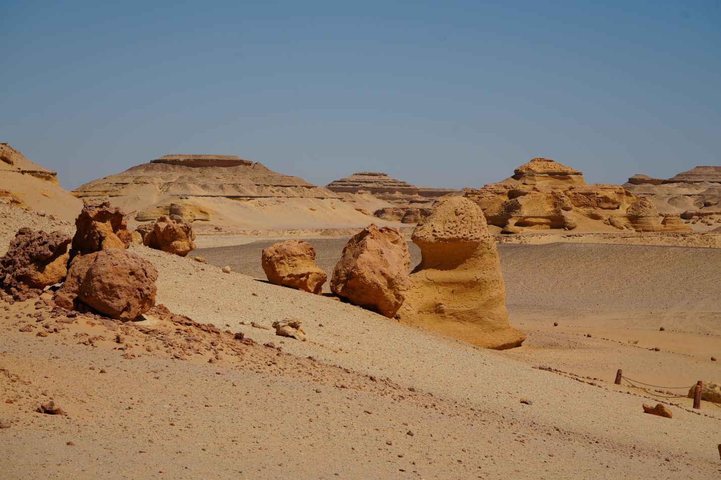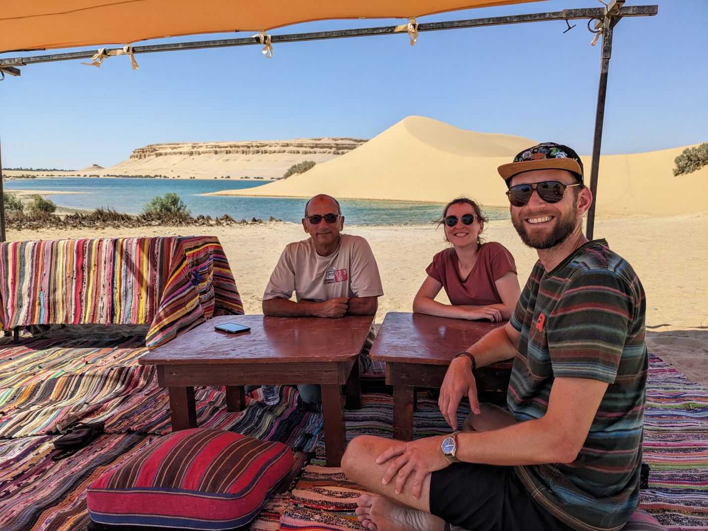 Am nächsten Tag startete unser Wüsten-Abenteuer. Der erste Halt war die Pyramide von Meidoum. Weiter ging es ins Wadi El Hitan, das Tal der Wale. Mich haben die über 40 Millionen Jahre alten, versteinerten Walknochen und Mangroven vom Hocker gehauen. Mindestens so spektakulär war aber auch die Landschaft mit ihren wunderschönen Steinformationen. Das Mittagessen haben wir am Magic Lake zu uns genommen, bevor es dann in die Halboase Fayoum ins Hotel Lazib Inn ging. Eine sehr schöne Unterkunft, um diesen eindrucksvollen Tag bei einem Drink an der Bar ausklingen zu lassen.